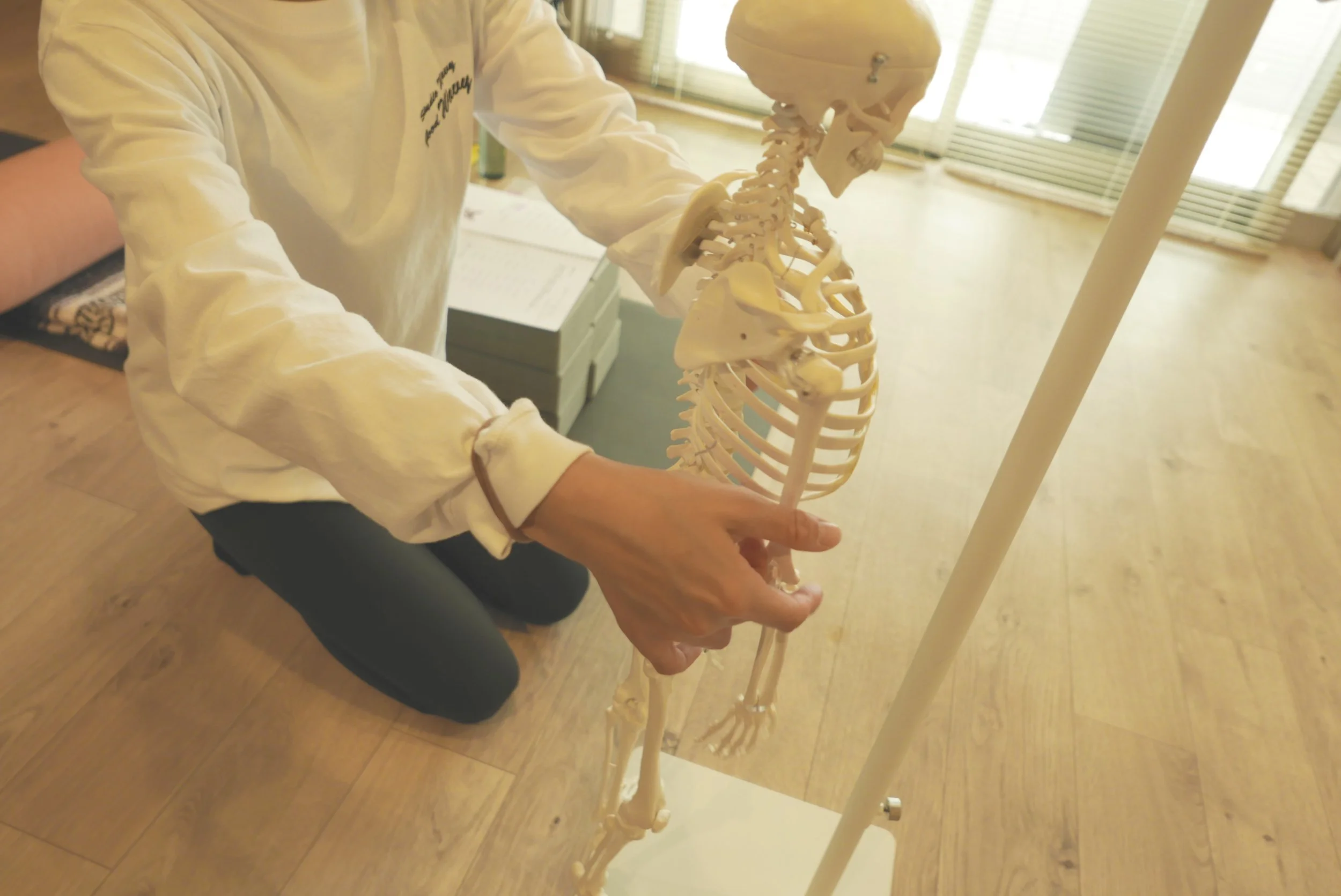 本コースを受講するだけでは動けるようにはなりませんが、基礎的な知識と動き方を身につけていく方法を学んでいきます。大切なのは無理に動かそうとせず脊柱全体をやさしく刺激していくこと。不安なことがあれば是非お問い合わせください。